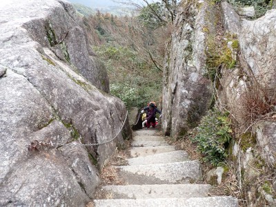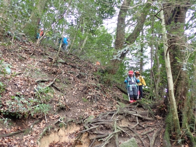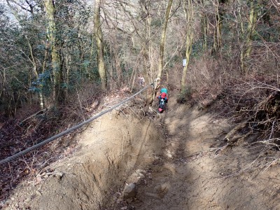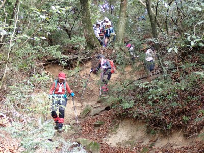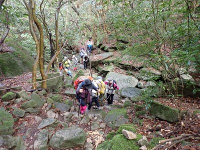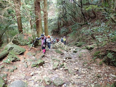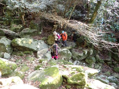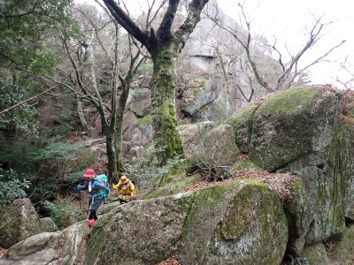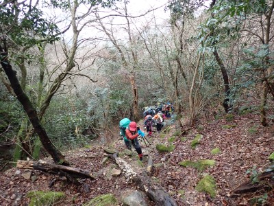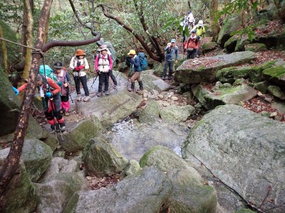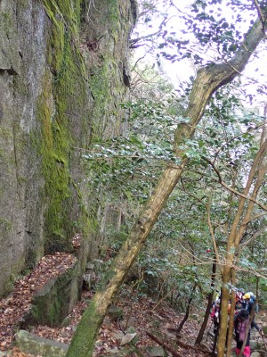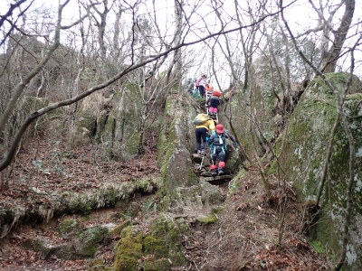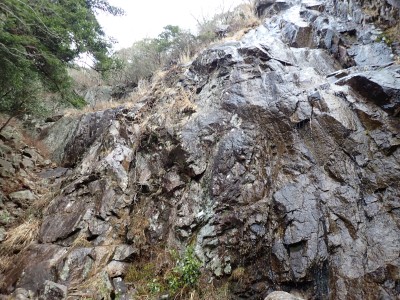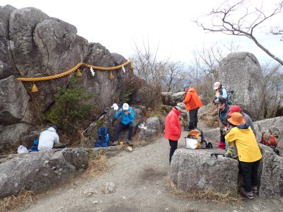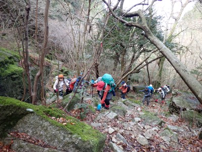 積雪の期待はしていなかったが、もう一度寒波が来て"大つらら"を皆で見たかった。しかし、願い虚しく気温はそこまで下がらなかった。昭和の森は、「一本松公園」と言う公園名があると最近知ったが、最近になって駐車場が有料となった。3時間以内は無料だが6時間まで500円、以降6時間毎に500円となっている。結局、今回は30分ほどオーバして1台1,000円支払うことになった。ま、最初から1回1,000円でも停めていたかもしれないが・・・。それはさておき、やはり冷え込みが今ひとつで"大つらら"を見ることができず悔しいが、メンバーのU先生が、珍しい花を見つけてくれて「このルートを歩いた甲斐があった」とほっとした。河原谷(こうらだに)ルートは最後まで谷を詰めて直登するのでガレ場が続き、稜線手前はかなりの急勾配となる。メンバーの一人が「帰りもこれを降るのか?」と質問されたが、これを降るのは結構大変だ。もちろんそんなことは承知の上、帰路は尾根道から山腹を巻いて降るルートを歩く予定だ。山頂まで気持ちの良い稜線歩きを楽しむ。仏頂山を過ぎて目の前に巨石と言うか石壁が見えたらそれが山頂だ。順番に垂直の石壁を登り石段を登り切って頂上に立つ。頂上は多くの登山者で賑わっている。さすが人気の山だ。青空も広がり眺めは最高だ。冷たい風を避けた場所でランチタイムを済ませ、集合写真を撮って下山開始。頂上から北側へ下り頂上部を時計回りに回り込んで往路に出る。往路をしばらく戻り、途中の分岐からうさぎ道へのルートへ取付く。しばらく尾根道だが、すぐに山腹を巻くように降ってゆく。うさぎ道分岐から北へ河原谷へとさらに降り、河原谷に出合うと往路に戻る。ここからは往路を真っ直ぐに戻ってゆく。よく周りを見ながら歩くと登るときに気づかなかった景観に気づくことも多い。林道に出ると列は崩れ、話に夢中になるメンバー。『いやいや皆、元気だわ』とつぶやいた自分がいた。今日も山に自然に仲間に感謝!!!