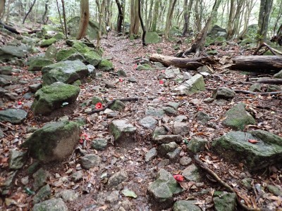 P-(35分)-林道終点-(65分)-難所ケ滝-(30分)-縦走路-(17分)-仏頂山-(20分)-山頂-(18分)-縦走路分岐-(35分)-うさぎ道分岐点-(20分)-河原谷出合-(30分)-林道終点-(25分)-P※休憩時間含まず。全行程で約6時間でした。 |