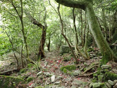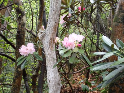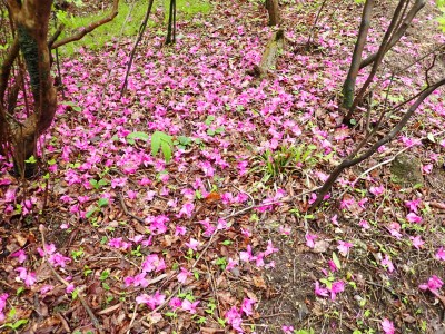 頭巾山までの直登ルートはとにかく急登だ。四つん這いになる場所もある。しかしながらこのルートでシャクナゲが見れたのは予想外だった。天候のせいか、いつも大賑わいの宝満山は登山者が少なく、静かな山頂だった。河原谷コースに合流して長い林道歩きを終え無事に駐車場に。今日も山に自然に付き合ってくれたM氏に感謝!感謝!