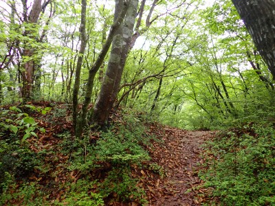 | ▲目に優しい新緑は元気もくれる・・・・三郡山と宝満山の縦走路にて) |