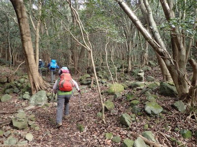 常盤登山口からは私にとっては初めてのルートで段々畑かと思える古い石垣や立石の巨大さには驚く。また、いっぷく望からの眺望もなかなかだ。