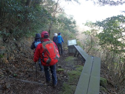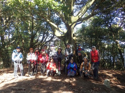 公民館前−(25分)−常盤登山口−(30分)−立石−(20分)−いっぷく望−(15分)−山頂−(7分)−ストーンサークル−(10分)−山頂−(30分)−遊歩道入口−(55分)−有寺※休憩含まず。全行程で4時間でした。 |