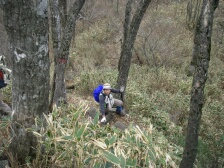 | 避難小屋とベンチがあるここで昼食 | 大竿峠(ここより下山) |