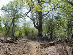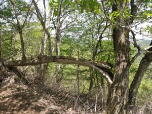 | 裂けた幹から枝が出ている | ブナの大木か? | 転ばないよう気をつけて |