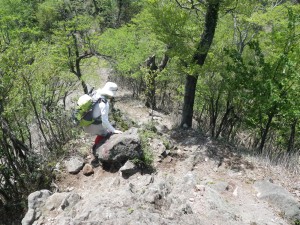 | 恐渕を眺めている | 登山道の雰囲気が少し変わった | 岩壁が多い |