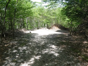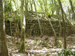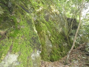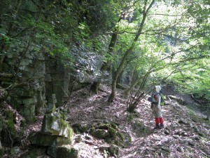 | この先の左が取り付き | この標識がある | 振り返ると石積み なんだろう? |