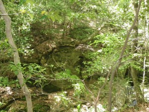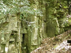 | 空が見えてきた | エゴノキの花 | 岩壁はブロック状になっている |