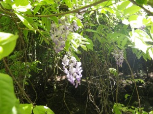 | 渡渉する家内 | 植林帯を降る | 藤の花が咲き乱れている |
