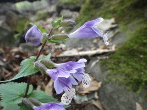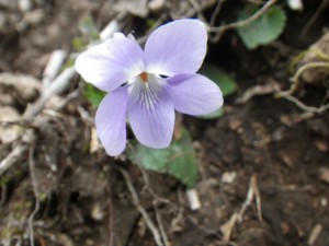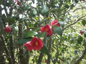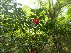 | 作業道を歩き始める | 椿がちょうど見ごろ | ラショウモンカズラ |