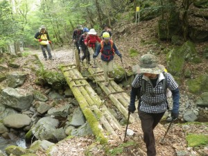 | 木橋は体重制限がありそうだ | 炭焼き跡 | ミツバツツジが咲いていた |