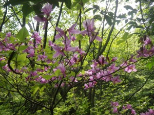 | クロモジの花 | 岩もある | シャクナゲが結構咲いている |