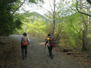 | 新しい鎖が設置されている | 林道に出る(9:45) | 谷間を詰めて行く |
