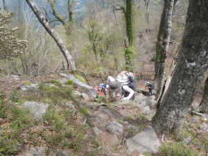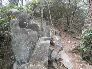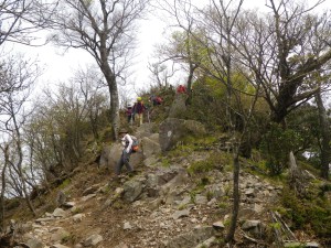 | ここから急登すると山頂 | 岩が結構多い | 両手も使って |