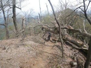 | 岩場を急降下 | きれいな樹林帯 | 大竿峠(12:26) |