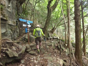 | 前に団体、巨木の横を通過 | 分岐点は左に(9:45) | 吉祥窟 |
