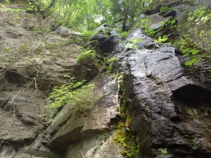 | 上を見上げる | 岩壁の下を進む | 多聞窟 |