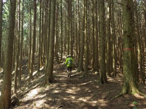 | 松の木が多い | 胎蔵界護摩場跡(10:15) | きれいな植林帯の尾根を歩く |