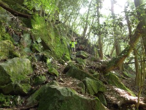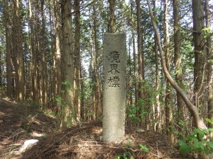 | 急斜面は木製の階段がある | 境界票とある | 登りつめると |
