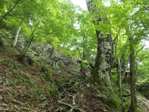 | 経読岳のようだが・・・ | 笈吊峠へは迂回路を使う | 木の根がたくさん露出している |