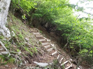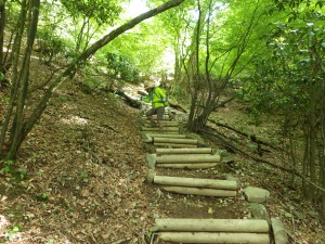 | 階段ができていたが・・・・ | 笈吊峠(14:37) | うぐいす谷への道も木の階段ができている |
