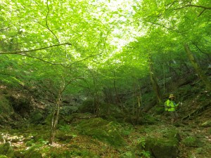 | きれいな自然林だ | 作業道を横断(11:25) | 杉の宿(11:33) |