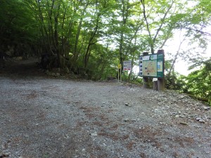 | 無事登山口(15:56) | 犬ケ岳登山口駐車場を通過 | 公共駐車場まで20分程度車道を歩く |