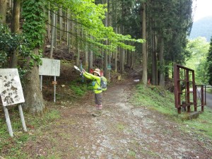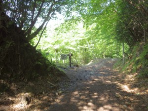| 道は広くなる | 木の階段は崩れて逆に危ない | 林道との分岐(11:56) |