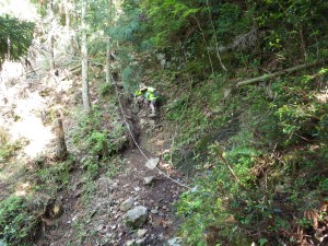 | 経読林道に出る(14:59) | 再び登山道へ(15:09) | 危険な場所もある |
