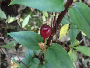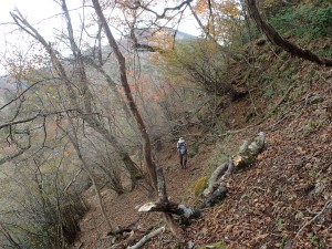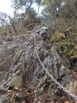 | 見上げると黄葉 | ツルリンドウに実がついている | 鎖場もある |