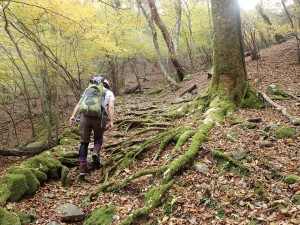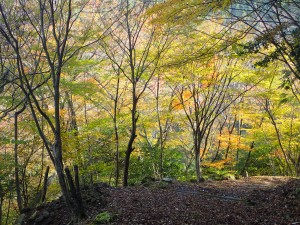 | のんびりと歩く | 紅葉を見ながら | 山の斜面を見ながら |