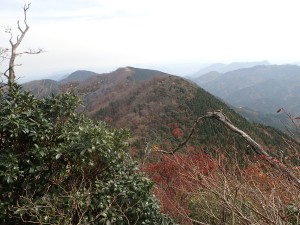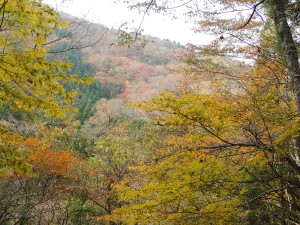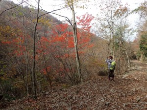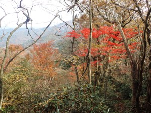 | この辺りが二ノ岳のはず | 紅葉が多くなる | 谷間は下まで紅葉していた |