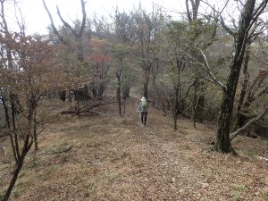 | 大竿峠目指し出発(13:08) | ブナやミズナラのきれいな稜線 | 広場のようなところも |