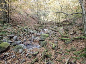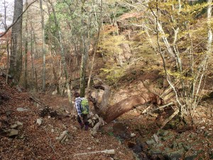 | 沢になってきた | いつのまにかVの字の谷間を歩いている | 大きな倒木の横を通過 |