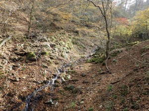 | 徐々に水量を増す | 林道に出た(13:43) | 林道を東に少し歩く |