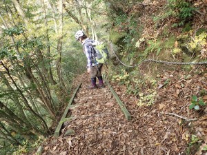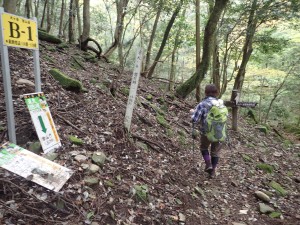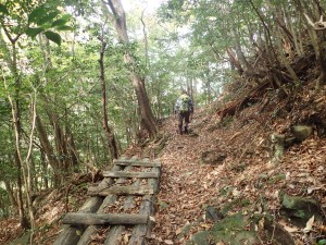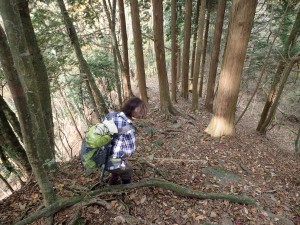 | 再び登山道へ | 見事だ | 杉林の急斜面を降る |