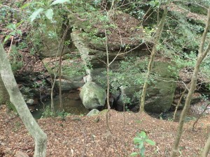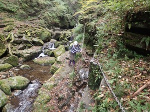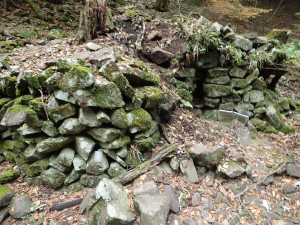 | 渡渉点(14:29) | 滑るので危険 | 昔は炭焼が盛んだったようだ |
