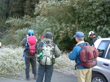 | 駐車場で出発前の打合せ | ||