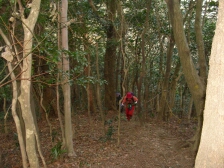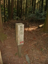 | 薦野峠の「塞の神」 | 清水道と書かれている | 急登を喘ぐ |