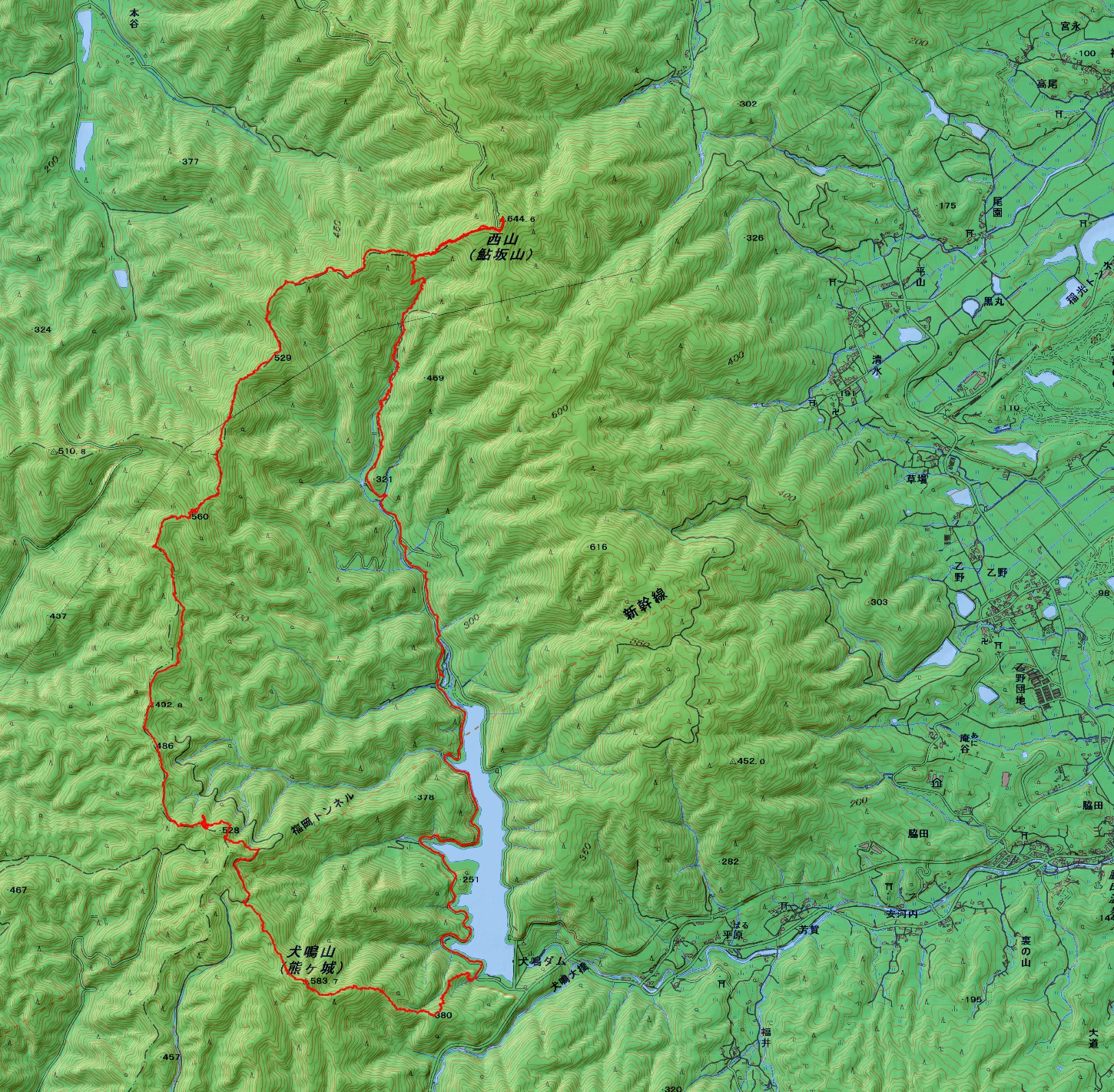 犬鳴山登山コース(GPSによる歩行軌跡) ※時計の逆回りに周回しました