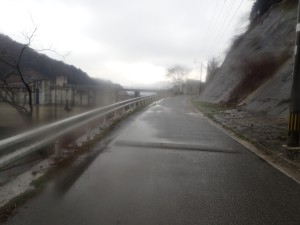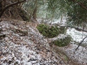 | 一級河川犬鳴川の標識 | 谷間を進む | 石垣がある |