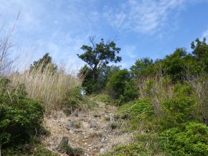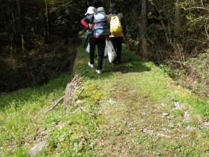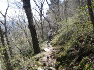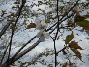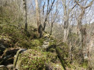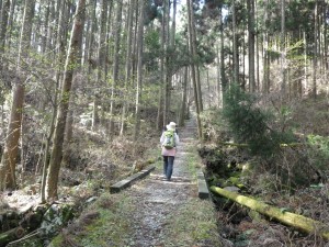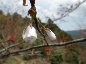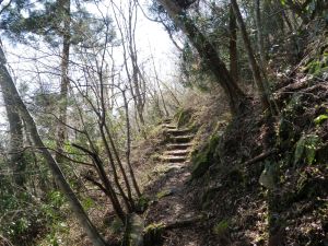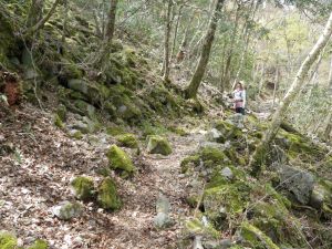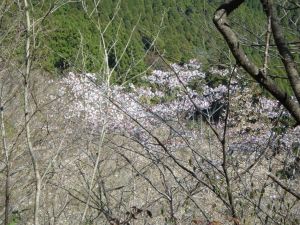 | 苔むした岩の道 | 登りやすいように勾配がなだらか | 桜の花がやっと見えた |