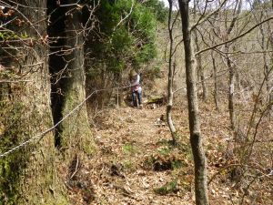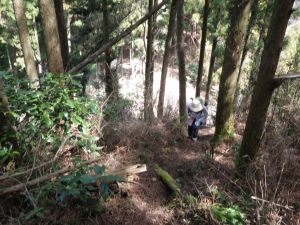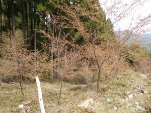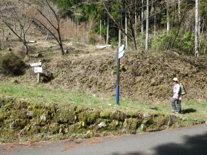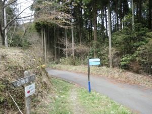 | 植林帯を歩く | 林道に出る(駐車スペースあり) | ここが登山口 |