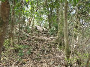 | 鞍部分岐の印 | 登り返す | 石割岳を振り返る |