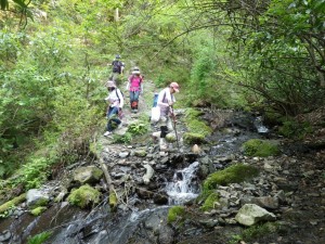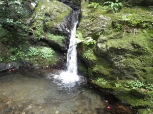 | 小さな滝にも思わずカメラを向ける | 何か見つけた? | |