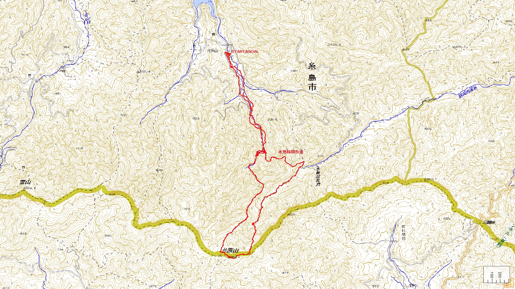 井原山登山コース(GPSによる歩行軌跡)