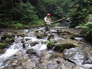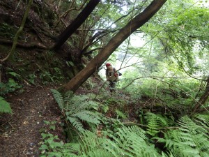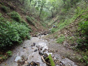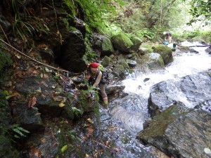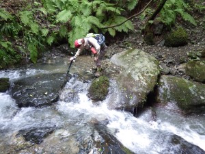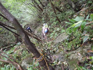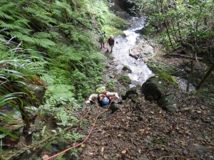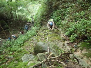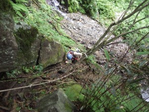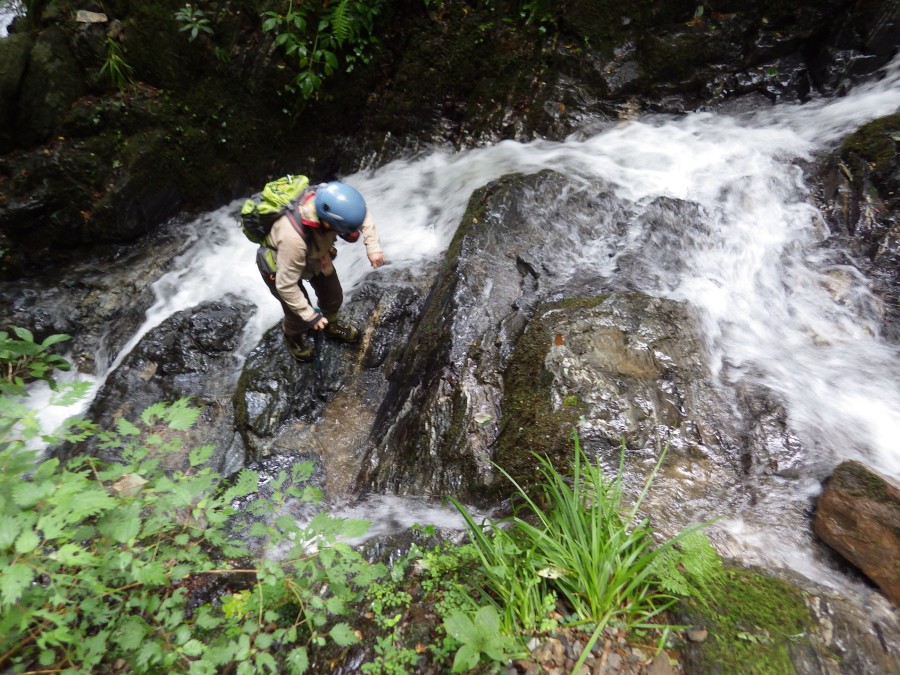 | 道はなく、水に濡れながら歩く | 高度をあげる | ひぇー これをよじ登る(10:20) |