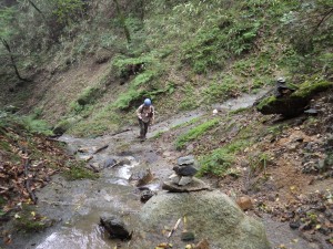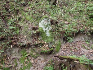 | 水量が少なくなる | こんな所に石碑? | 急勾配になってきた |