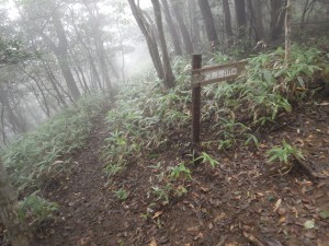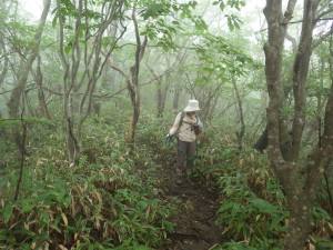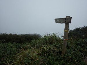 | 縦走路を快適に歩く | ガスって見えない | ギボウシの花はもう終わりのようだ |