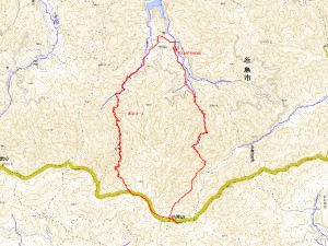 | キトク橋P〜洗谷登山口〜縦走路出合い〜山頂〜水無分岐〜アンの滝〜キトク橋P | ||