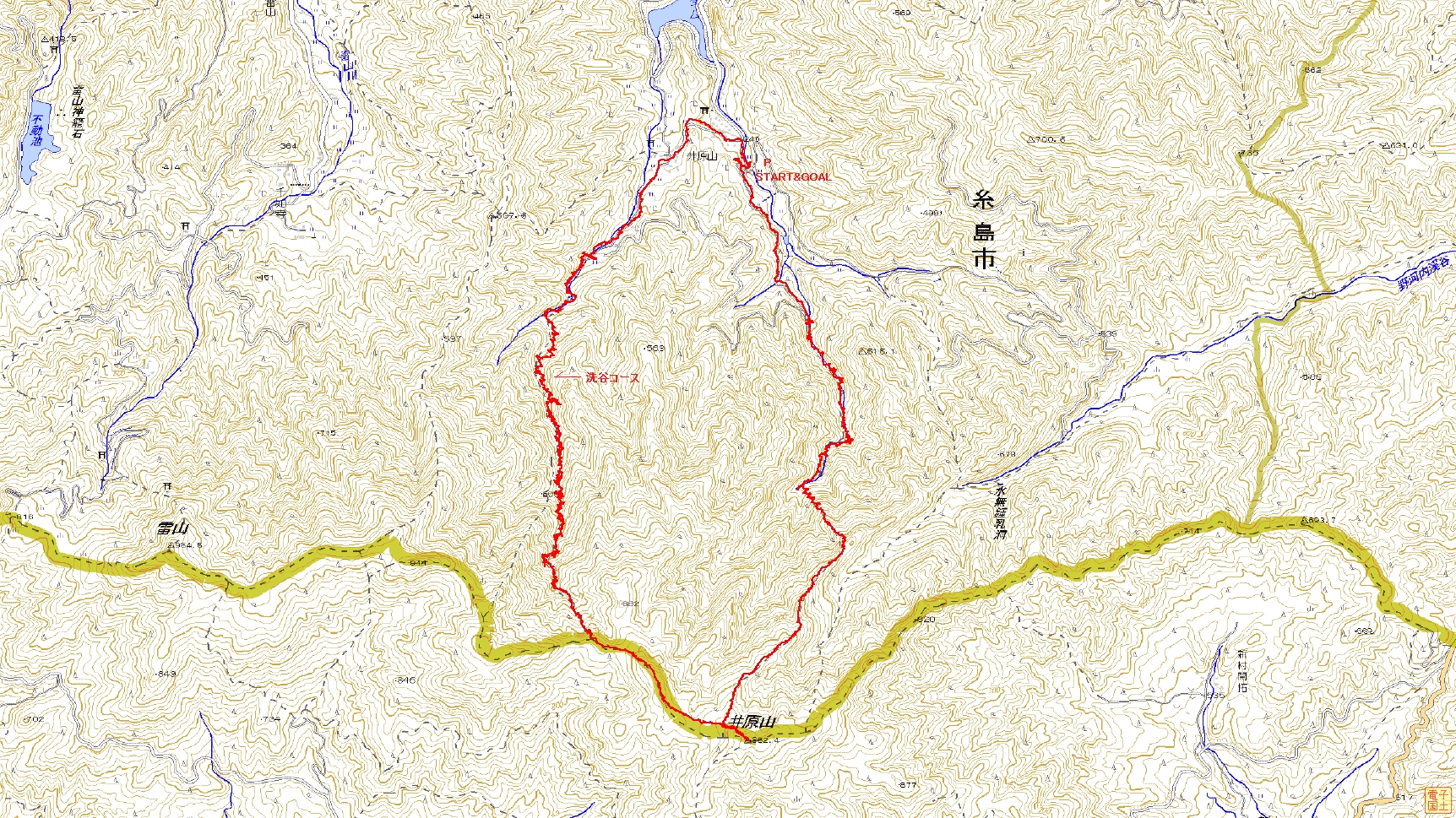 井原山登山コース(GPSによる歩行軌跡)